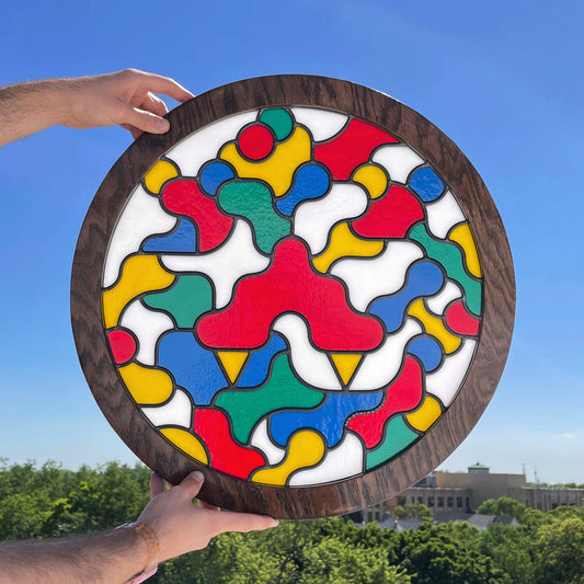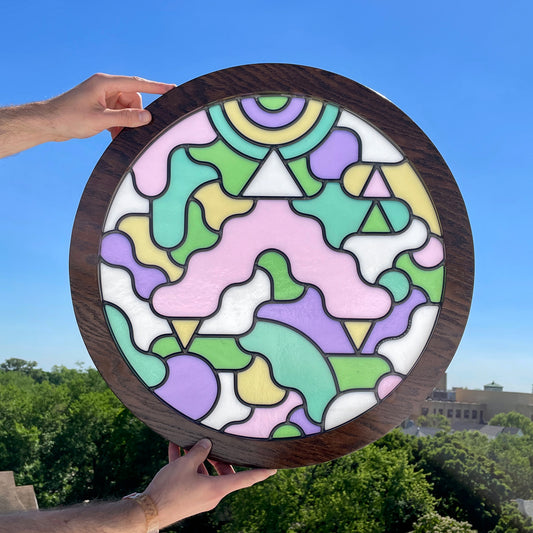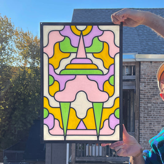 Kerbi Urbanowski is a multidisciplinary artist who seeks to make the world more colorful, luminous, and interesting. Her process begins with deconstructing the human figure and trying to make sense of the pieces. She believes what happens by chance is more interesting than what happens intentionally, which is why she lets her materials' organic nature lead. When using stained glass, she likes to maintain the shapes the glass broke into naturally to guide her process. Her art practice is rooted in sustainability and minimizing art's eco-footprint by reconsidering what is usable. She believes art should be accessible to all, which is why she's worked to create an array of products at multiple price points. Kerbi was born in Chicago, Illinois, and currently resides in California's San Francisco Bay Area. She graduated with a BFA in Painting from the San Francisco Art Institute in 2012.
