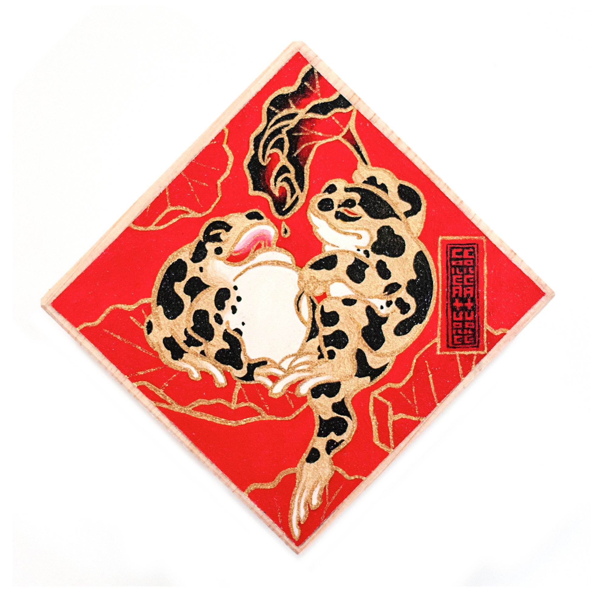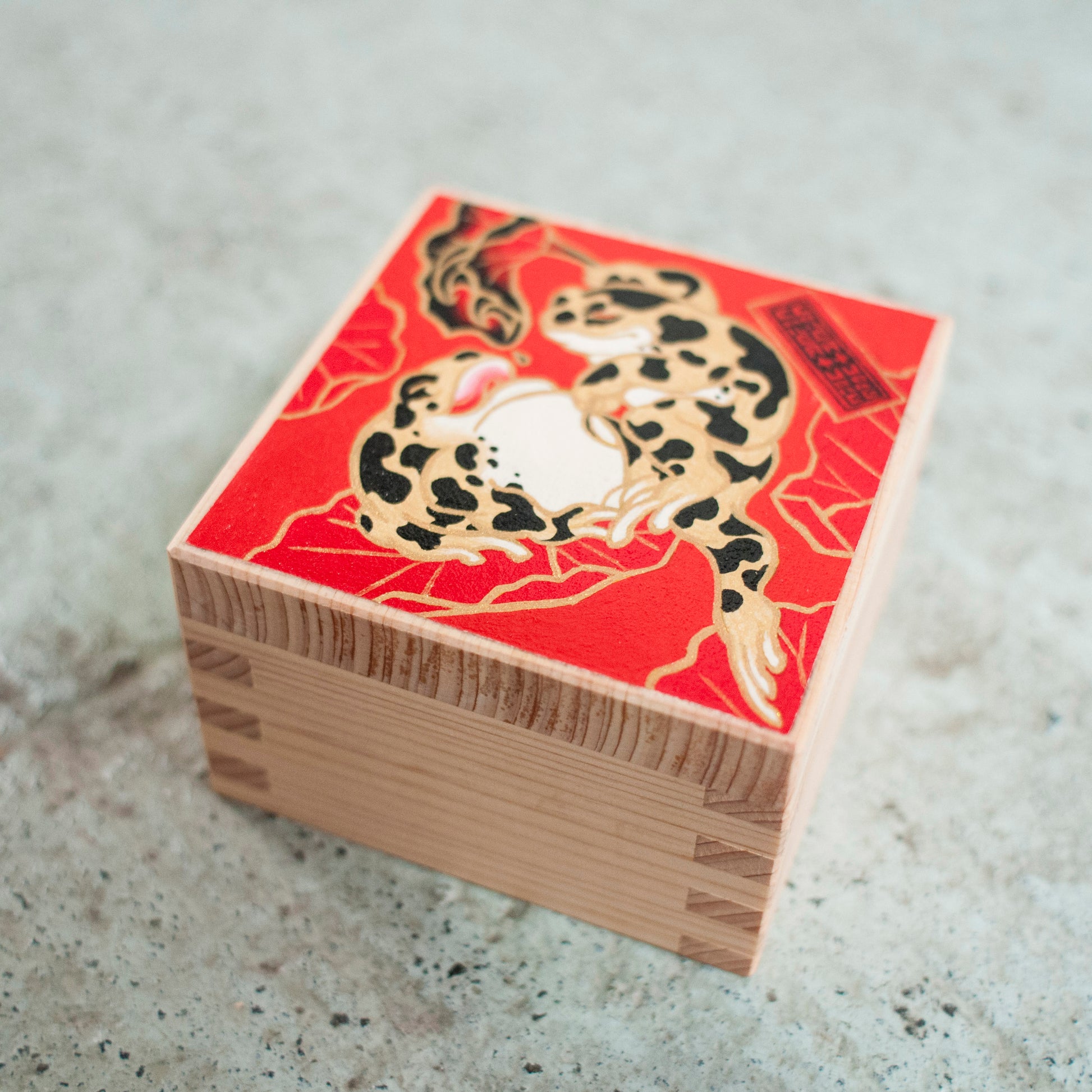 中くらい: 枡にアクリル絵具、ヒノキ