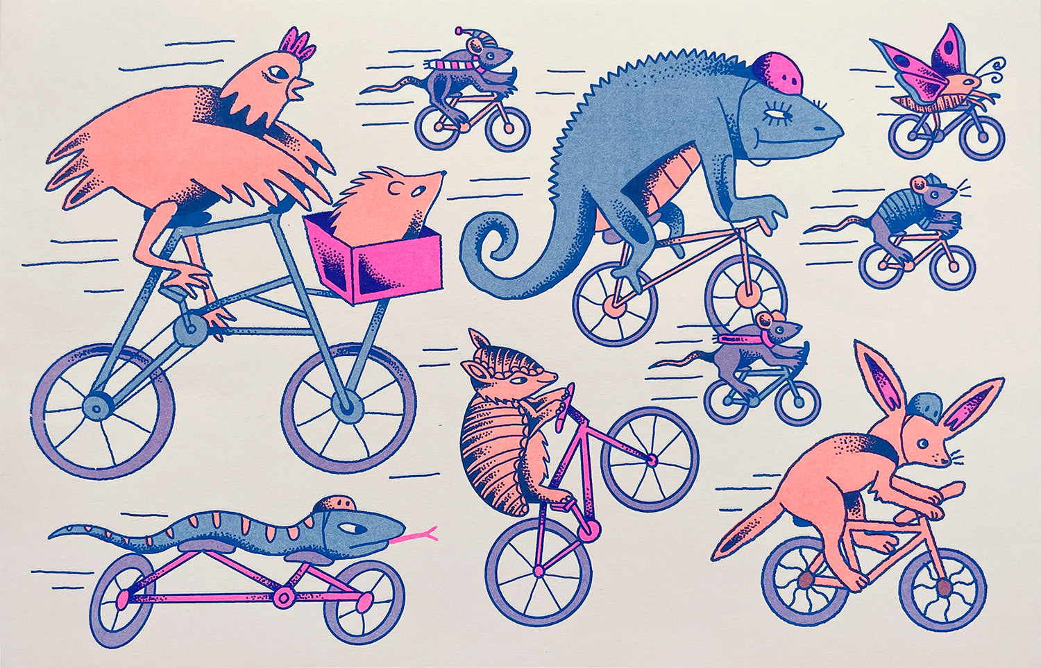*リソグラフまたはリソグラフィーは、異なる色のインクを重ねて、豊かで鮮やかな画像を作成する印刷プロセスです。このプロセスでは、一度に 1 層のインクを追加する必要があるため、位置合わせにわずかな変化が生じるのは当然です。これにより、すべての印刷物が互いにわずかに異なるため、すべてがユニークになります。