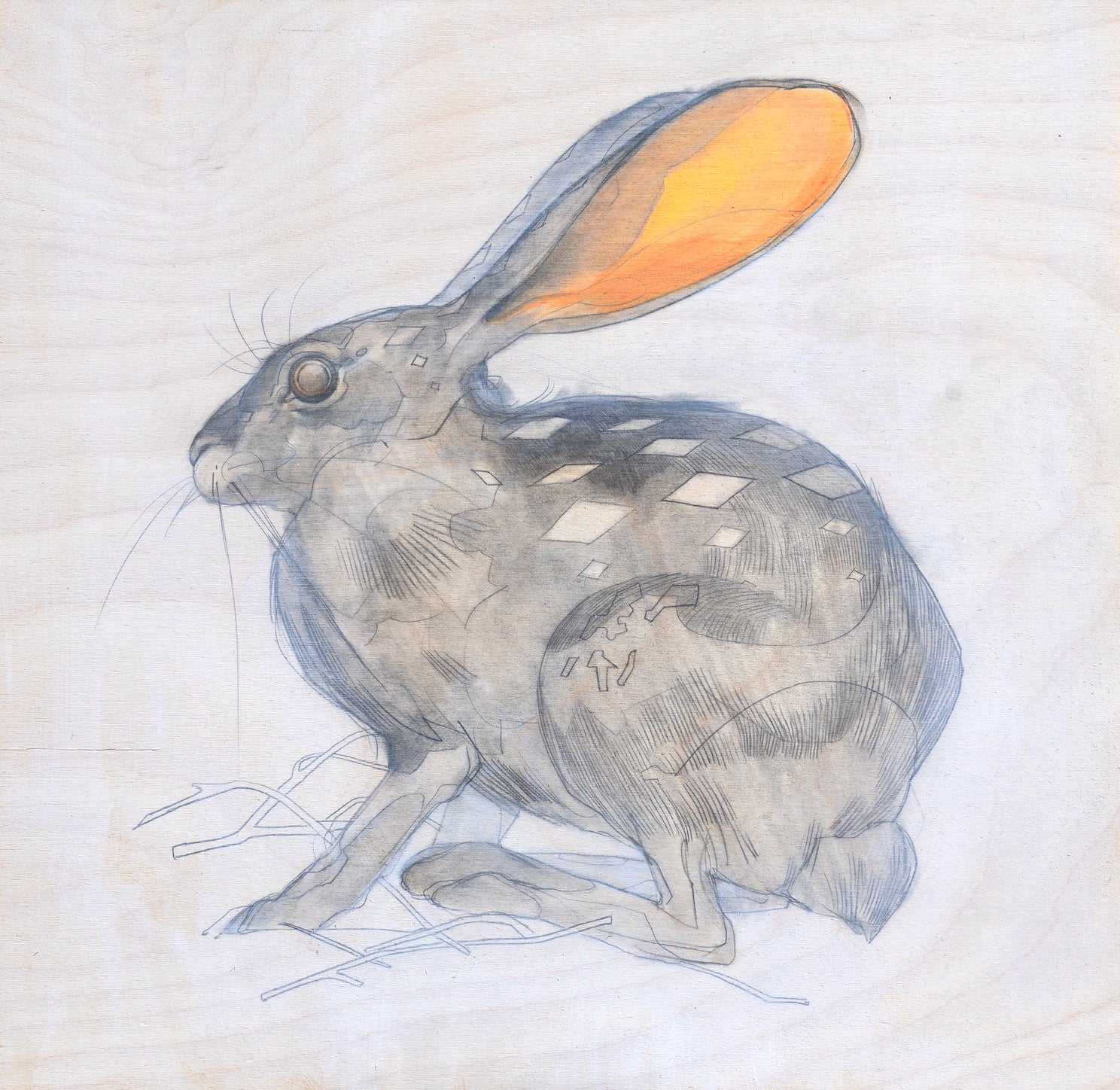 Medium: Pencil on wood board with acrylic wash